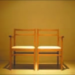 白いハコには、家具が点々と存在し、人々はじっと佇む。