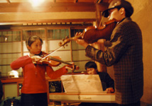 メンバーはフィドル奏者のマサコちゃん、シライくん、ピアノのヤギくんです。