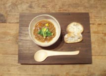 二日目は居酒屋店員のサクイシくんがカブラとお野菜をビールでコトコト煮込んだスープ。菜の花のせ。