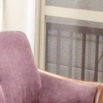 彼女の雰囲気、ソファーの色合い、空間の形、