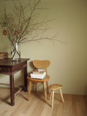 作っていただいた ちびスツールの あったかさが