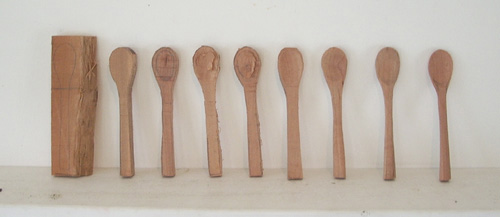 また、『田中美穂植物店コーヒショプ』か、『はじかみ』さんで、荒削りスプーンを一本800円にて何種類かご用意いたしてますので、お時間がございましたら、その中から好みにあったスプーンをお選びください。